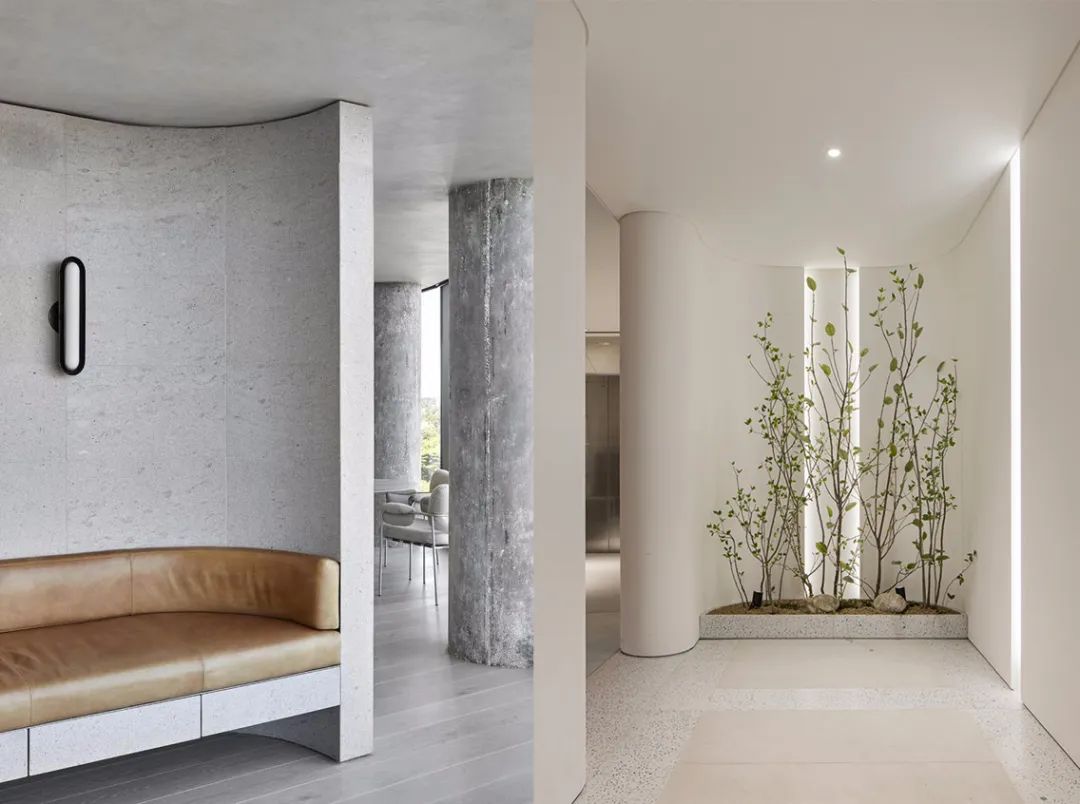 隨著奶油風、極簡風的盛行,弧形、倒圓角似乎成為了當下室內空間最受歡迎的元素,圓角在空間中到底該怎么運用呢?在哪些地方可以做圓角?