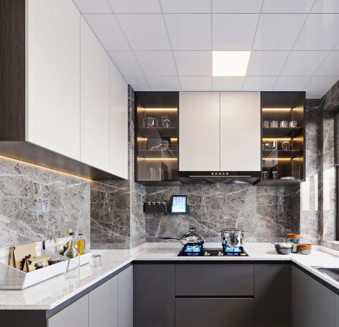 和玄關(guān)柜一樣,時(shí)間長久,頂部容易積灰幾乎是無法清理的,而且廚房是重油煙的地方,頂部也會(huì)吸附油煙,更難清理。因此做到頂既能保證美觀和顏值,也避免了打掃清理的麻煩。