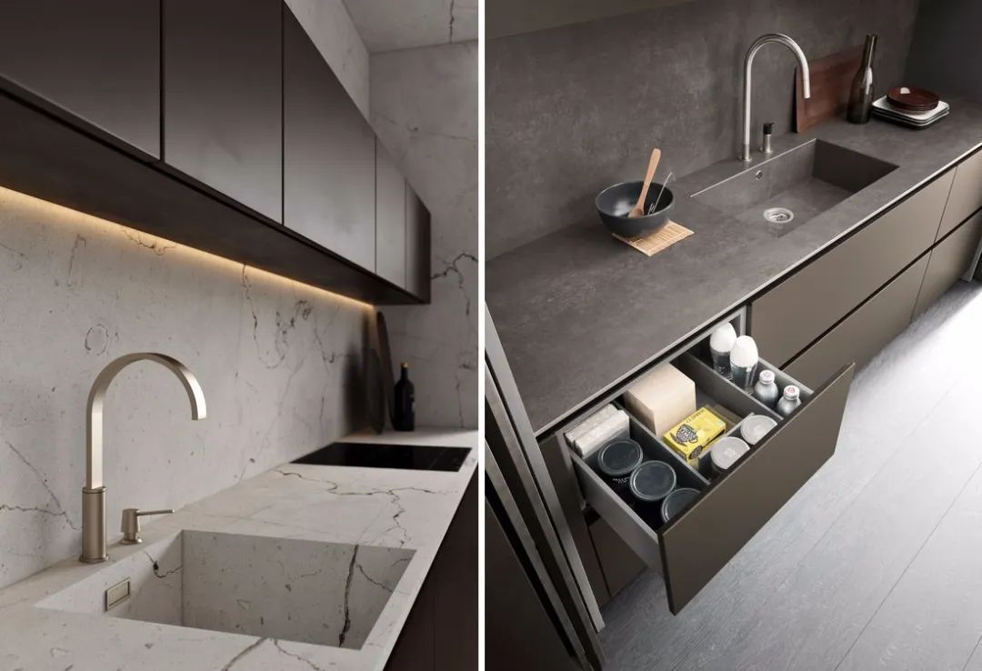 臺上盆下方和臺面接縫的區(qū)域都是衛(wèi)生死角,很難清理,另一方面,濺在臺面上的水,也不好直接流入到水池里面,要用抹布來擦,增加勞動(dòng)頻率,如果改用臺下盆,一來避免衛(wèi)生死角存在,二來臺面上的積水也好直接清理到水池里。