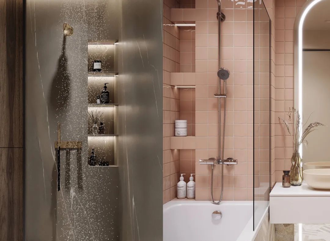 04. 淋浴間壁龕找坡壁龕如果沒有找坡處理,那么淋浴時(shí)進(jìn)去的積水一直保留在里面出不來,時(shí)間長了容易發(fā)霉滋生細(xì)菌,如果壁龕做出一些坡度,讓積水自然流出風(fēng)干,能夠讓壁龕保持清爽整潔。